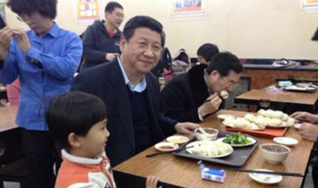 2013年12月,習(xí)近平出現(xiàn)在北京慶豐包子鋪。他自己排隊買包子、付款、端盤子、取包子的照片,瞬間傳遍網(wǎng)絡(luò)。他點的“二兩豬肉大蔥包,一碗炒肝,一份芥菜”,合計21元,被網(wǎng)民親切地稱為“主席套餐”。