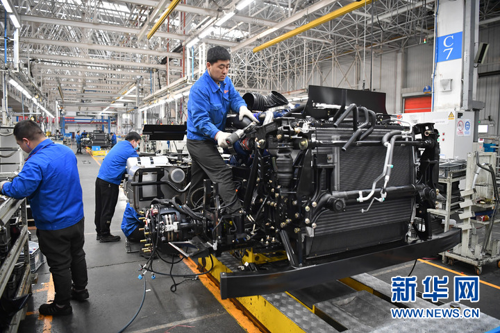 新華網(wǎng)西安2月23日電(史夢 張思思)工業(yè)機器人揮舞長臂,工人在生產(chǎn)線上緊張忙碌。在位于西安經(jīng)開區(qū)涇渭新城的陜汽控股集團(tuán),總裝車間正馬力全開,每6分鐘就有一輛整車從這里下線。