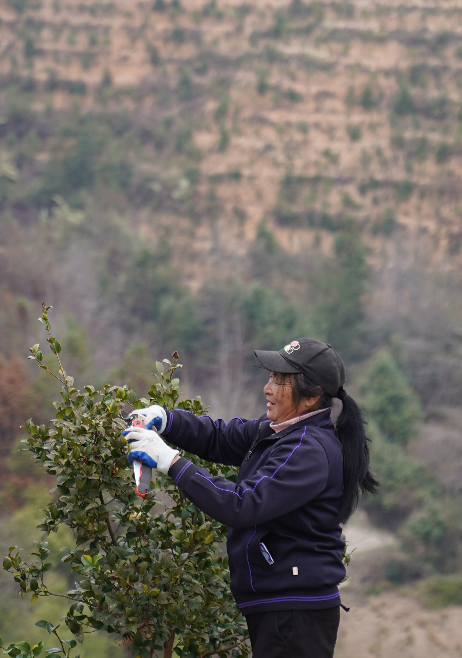 2月24日,在位于江西贛州市經開區(qū)湖邊鎮(zhèn)蛤湖村的白石下油茶基地,農戶在修剪植株。新華社記者 周密 攝