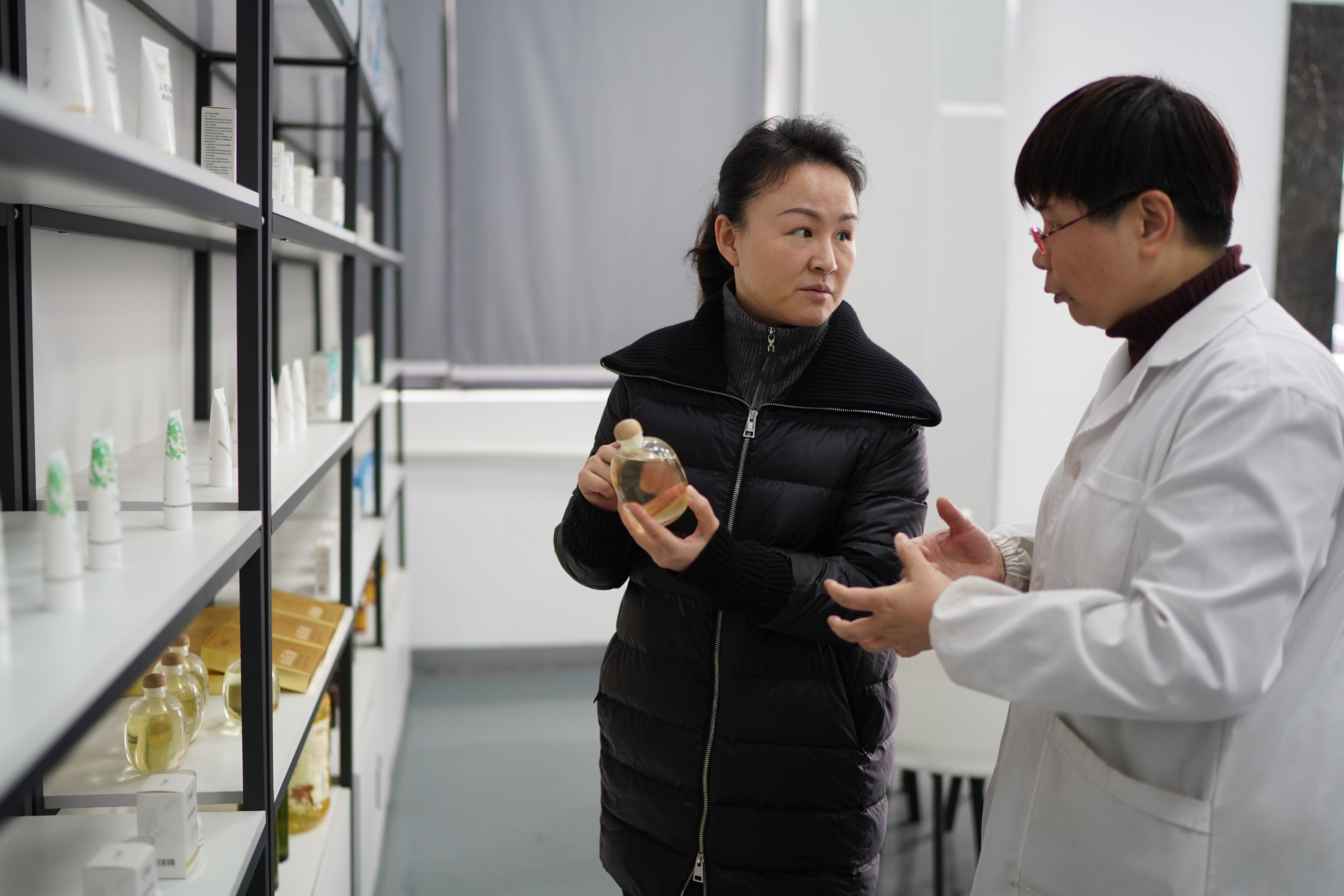 這是2月24日在位于江西贛州市章貢區(qū)的贛州哈克生物科技有限公司拍攝的茶油護膚產品。新華社記者 周密 攝