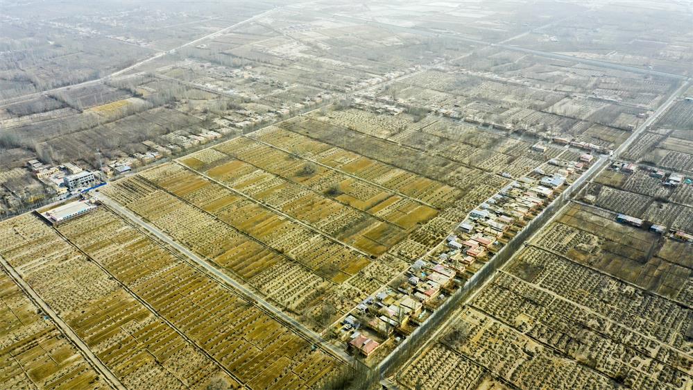 這是2月21日拍攝的新疆和田地區(qū)策勒縣巴什玉吉買(mǎi)村(無(wú)人機(jī)照片)。新華社記者 丁磊 攝