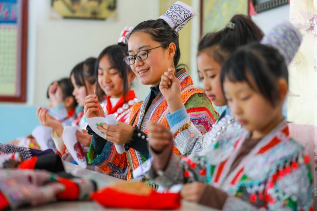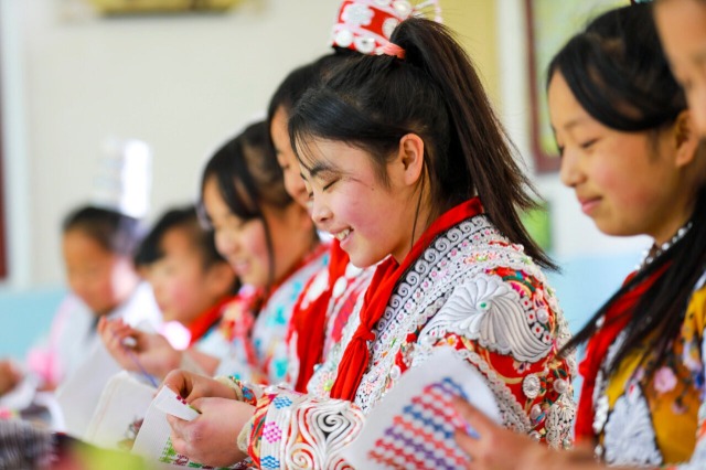 近年來,貴州省黔西市新仁苗族鄉(xiāng)折溪小學(xué)積極推動優(yōu)秀非遺文化進(jìn)課堂,選任學(xué)校精通刺繡、蠟畫、蠟染的教師指導(dǎo)學(xué)生學(xué)習(xí),讓苗族孩子們“零距離”接觸非遺技藝,弘揚(yáng)和傳承民族優(yōu)秀傳統(tǒng)文化。中國教育報(bào)-中國教育新聞網(wǎng)通訊員 周訓(xùn)超 攝