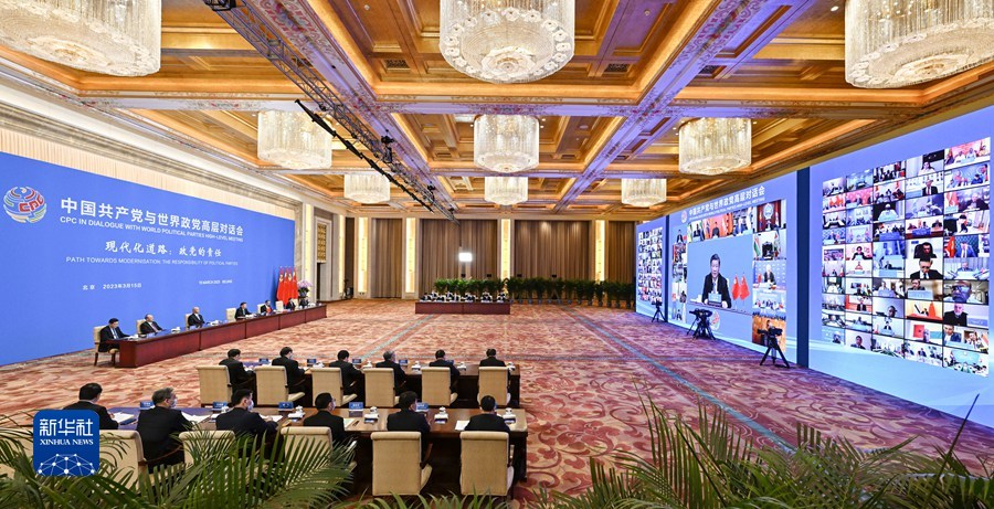 中國共產(chǎn)黨與世界政黨高層對(duì)話會(huì)以“現(xiàn)代化道路:政黨的責(zé)任”為主題,來自150多個(gè)國家的500多個(gè)政黨和政治組織的領(lǐng)導(dǎo)人出席會(huì)議。