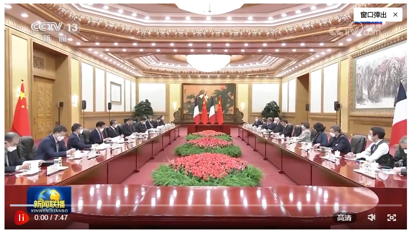馬克龍表示,我對(duì)3年多前訪華情景記憶猶新,非常高興再次訪華,同習(xí)近平主席共同探討進(jìn)一步提升法中全面戰(zhàn)略伙伴關(guān)系。我完全贊同習(xí)近平主席對(duì)法中關(guān)系的積極評(píng)價(jià)以及就發(fā)展雙邊關(guān)系提出的重要建議。明年法中將共同慶祝建交60周年。60年來,法中關(guān)系保持了穩(wěn)定健康發(fā)展。雖然法中兩國發(fā)展模式不同,但雙方相互尊重,坦誠交流,各領(lǐng)域合作實(shí)現(xiàn)了互利互惠,同時(shí)在合作應(yīng)對(duì)當(dāng)今世界面臨的全球性挑戰(zhàn)方面取得重要進(jìn)展。法方尊重并奉行一個(gè)中國政策。我此次率龐大代表團(tuán)訪華,就是希望同中方加強(qiáng)合作,促進(jìn)人文交流。法方祝賀中方成功舉辦昆明-蒙特利爾《生物多樣性公約》第十五次締約方大會(huì),希望繼續(xù)在氣候變化、糧食安全等問題上同中方密切溝通合作。中方將舉辦第三屆“一帶一路”國際合作高峰論壇,法方愿同中方就此開展合作。法方贊賞中方始終遵守聯(lián)合國憲章宗旨,為解決國際地區(qū)熱點(diǎn)問題發(fā)揮積極作用,期待同中方密切溝通協(xié)作,努力實(shí)現(xiàn)世界的持久和平與穩(wěn)定。