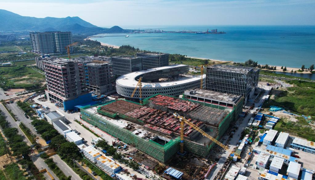 這是建設(shè)中的海南三亞崖州灣科技城的深??萍紕?chuàng)新公共平臺項目(無人機照片,2022年10月17日攝)。新華社記者 楊冠宇 攝