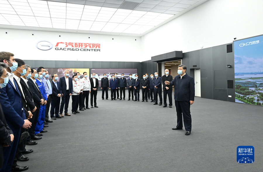 習(xí)近平隨后來(lái)到廣汽埃安新能源汽車股份有限公司考察。他走進(jìn)企業(yè)展廳、總裝車間、電池生產(chǎn)車間等,了解企業(yè)突破關(guān)鍵核心技術(shù)和推動(dòng)制造業(yè)高端化、智能化、綠色化等進(jìn)展情況。在廣汽研究院,習(xí)近平仔細(xì)察看智能網(wǎng)聯(lián)實(shí)驗(yàn)室、模型設(shè)計(jì)實(shí)驗(yàn)室等,并同科技人員、企業(yè)家、職工、外資企業(yè)代表等交流。習(xí)近平指出,中國(guó)改革開放政策將長(zhǎng)久不變,永遠(yuǎn)不會(huì)自己關(guān)上開放的大門。一切愿意與我們合作共贏的國(guó)家,我們都愿意與他們相向而行,推動(dòng)世界經(jīng)濟(jì)共同繁榮發(fā)展。習(xí)近平強(qiáng)調(diào),中國(guó)是個(gè)大國(guó),要重視實(shí)體經(jīng)濟(jì),走自力更生之路。關(guān)鍵核心技術(shù)要立足自主研發(fā),也歡迎國(guó)際合作。要加強(qiáng)教育和人才培養(yǎng),夯實(shí)科技自立自強(qiáng)根基。