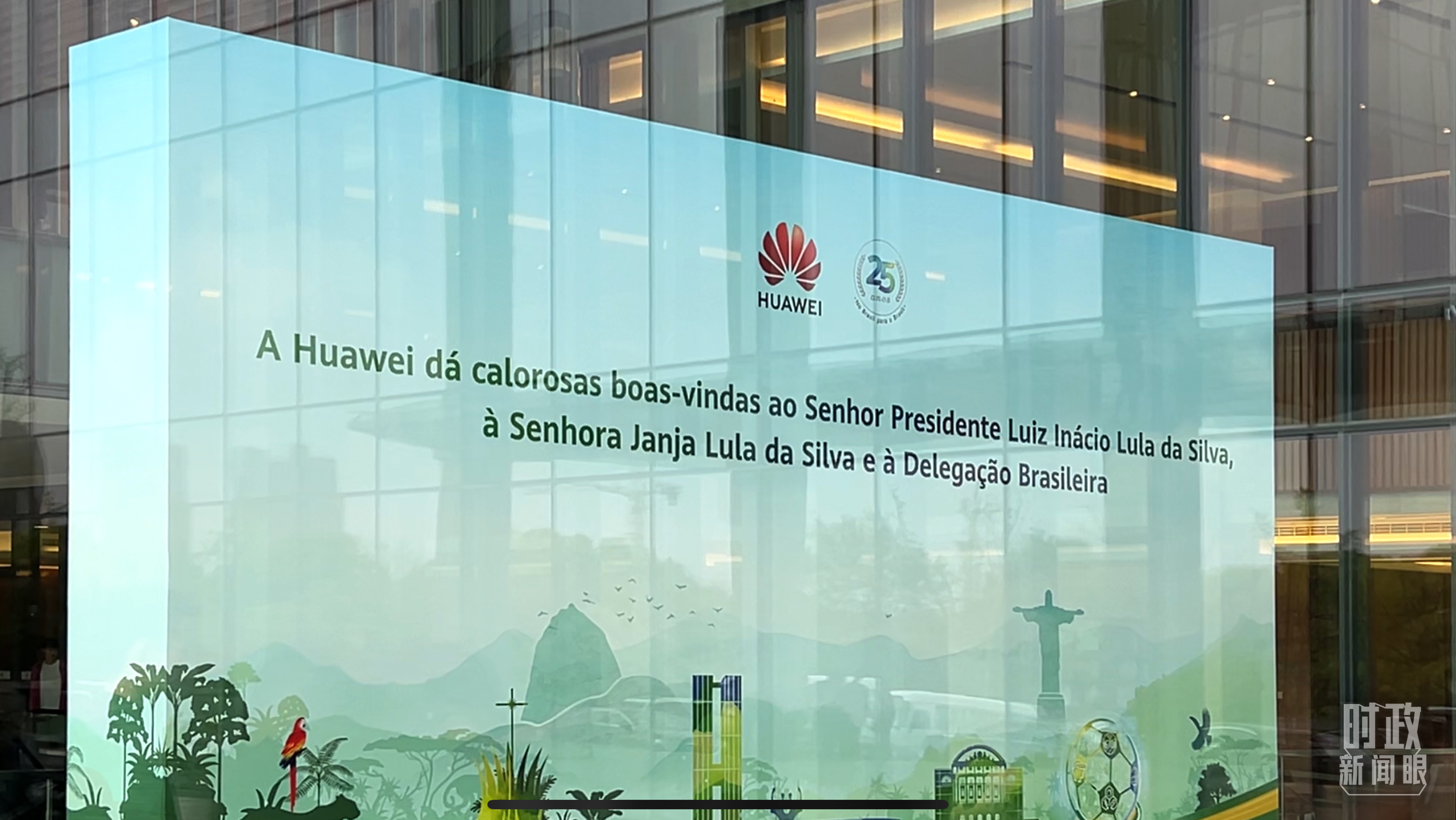 △華為上海研究所內歡迎盧拉總統(tǒng)參觀訪問的標語。(總臺央視記者楊新禹拍攝)