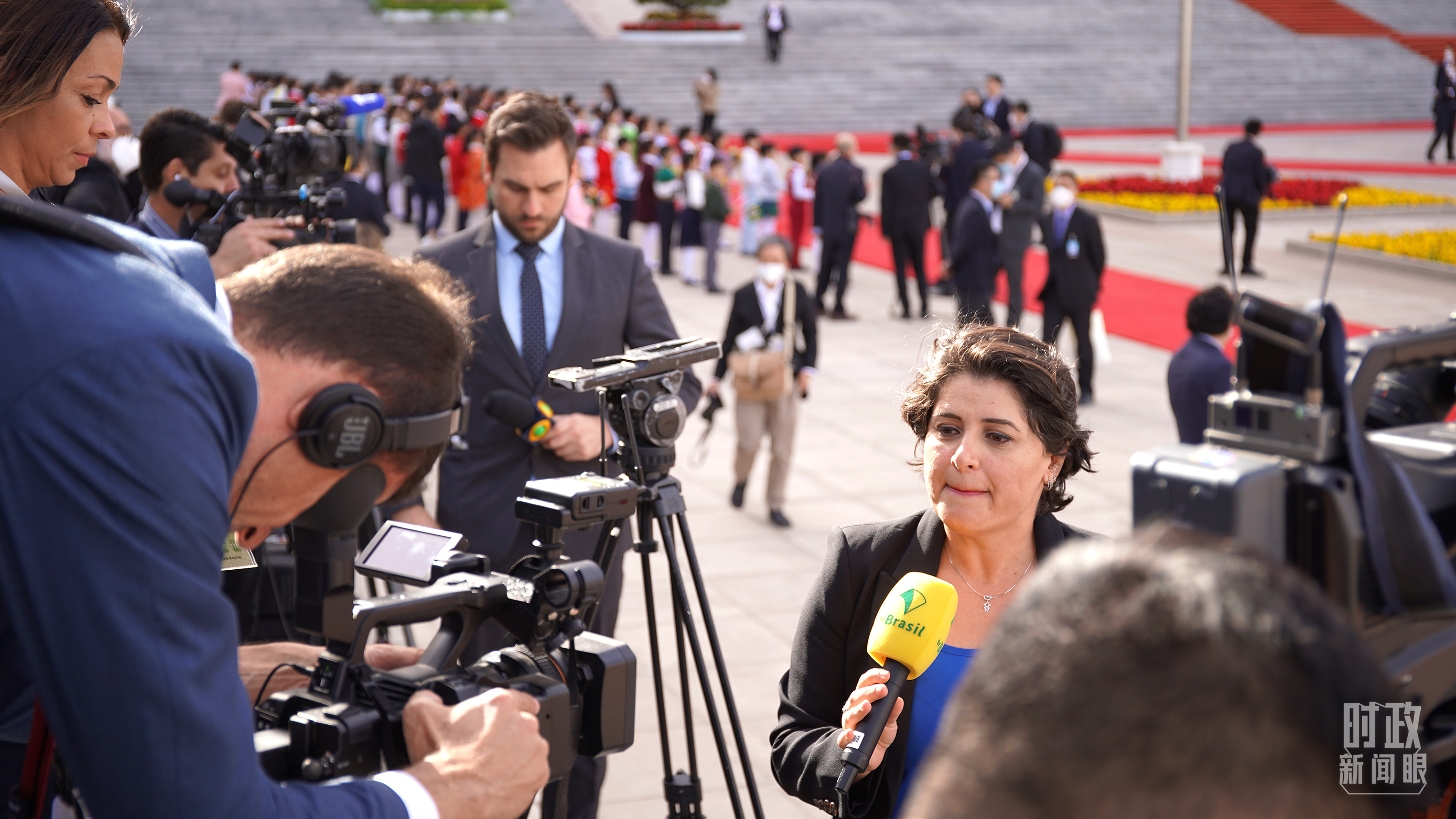 △現(xiàn)場報道歡迎儀式的媒體記者。(總臺央廣記者潘毅拍攝)