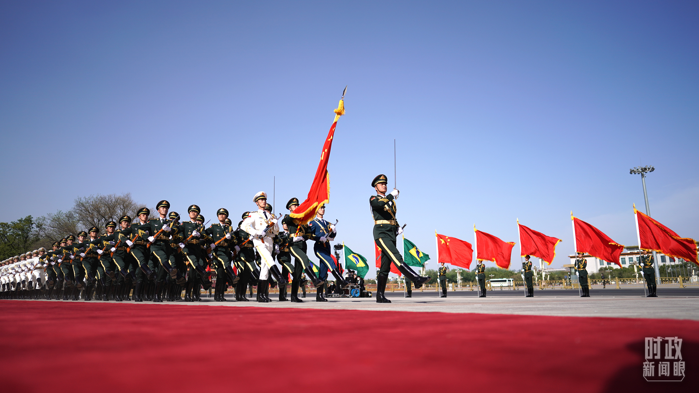 當天,習主席在人民大會堂東門外廣場為盧拉總統(tǒng)舉行了歡迎儀式。儀式上有兩個值得關注的細節(jié):一個是除了巴西國歌之外,軍樂團特意演奏了一首叫作《新時代》的巴西特色音樂,二是現(xiàn)場歡迎隊伍中再次出現(xiàn)了少年兒童的身影,這也是新冠疫情發(fā)生以來,孩子們首次回歸室外歡迎儀式。