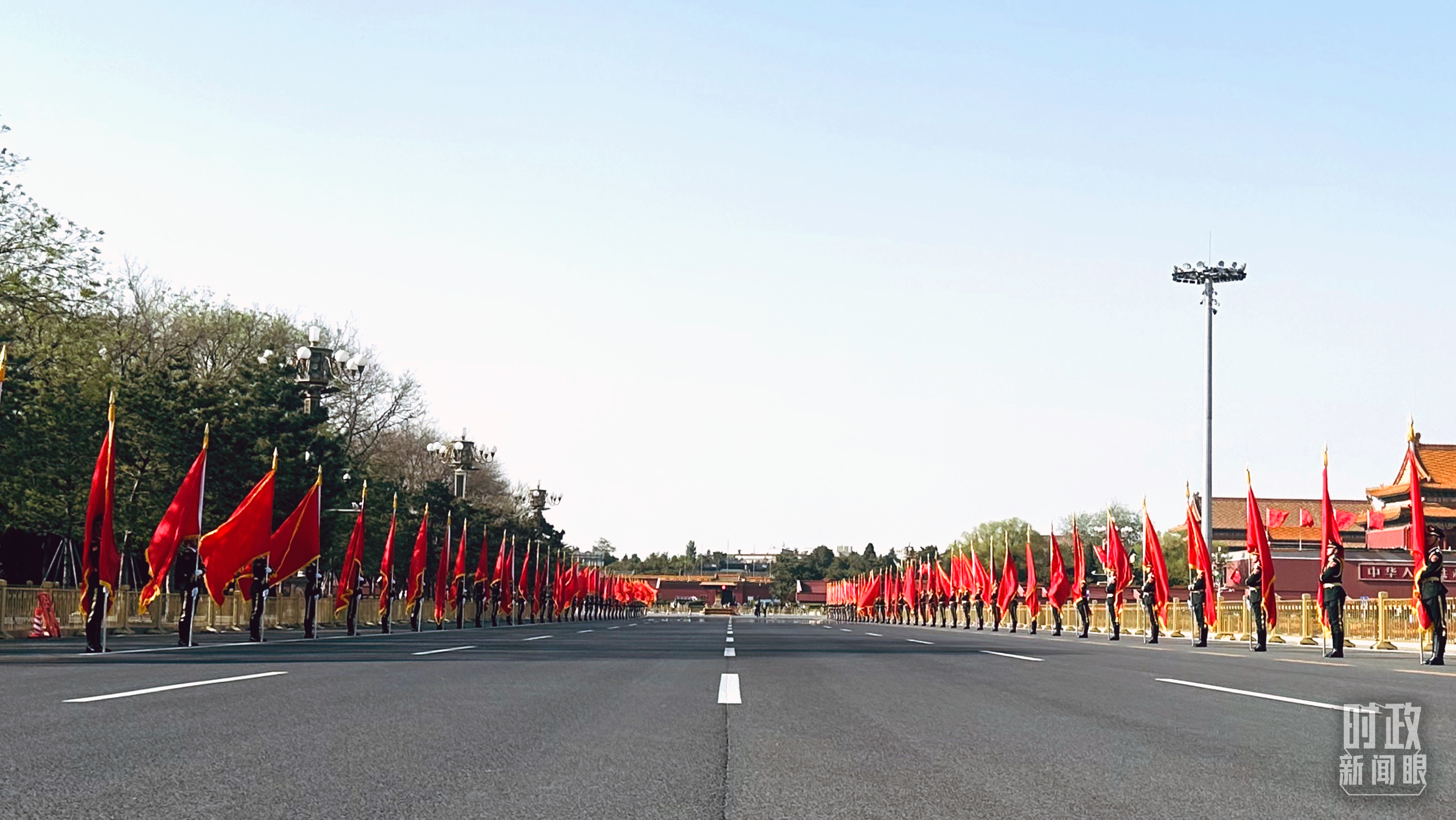 △長安街兩側懸掛起中巴兩國國旗。(總臺央視記者陸泓宇拍攝)