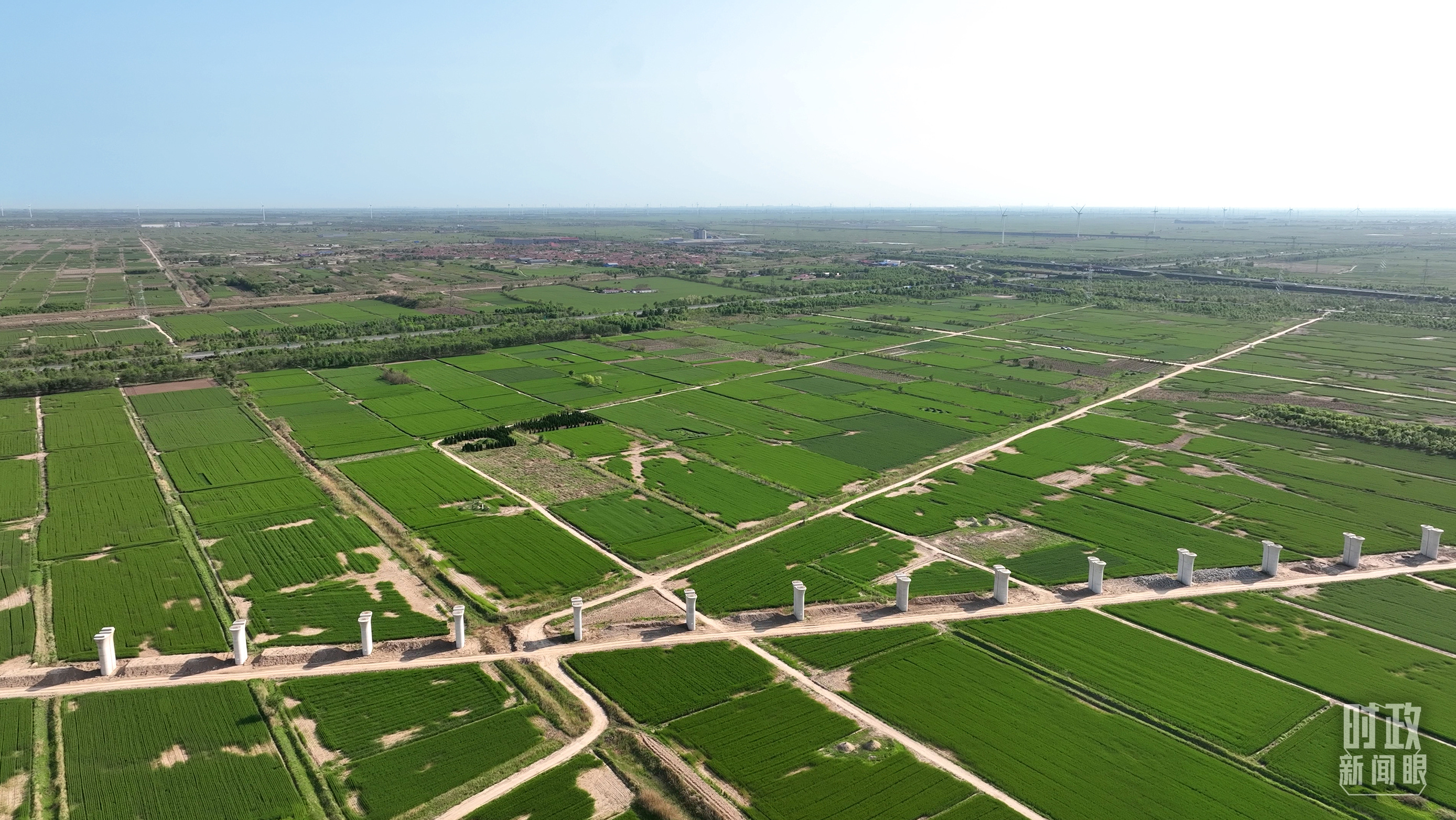 △俯瞰仙莊片區(qū)旱堿地麥田。(總臺記者郭永良拍攝)
