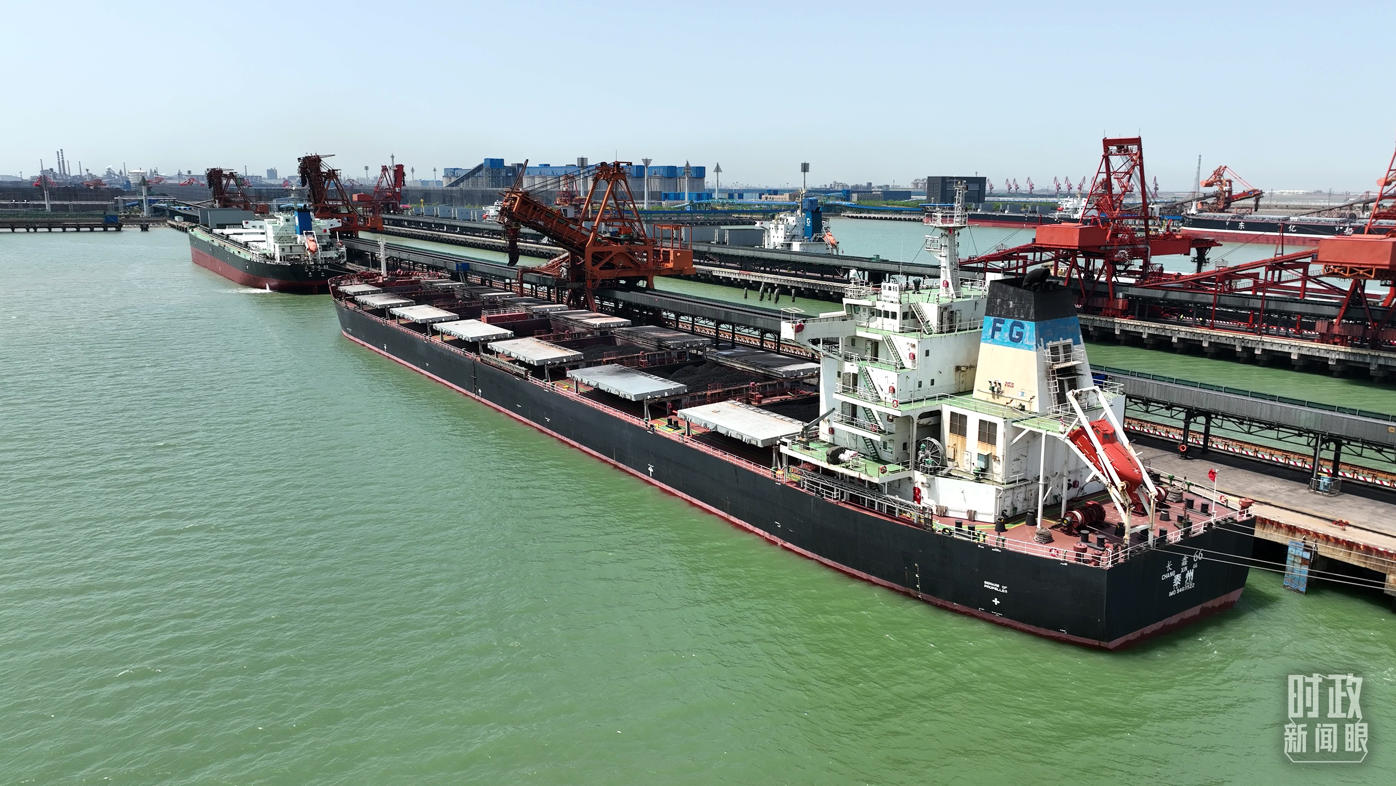△??吭邳S驊港的神華518輪。(總臺央視記者張曉鵬拍攝)