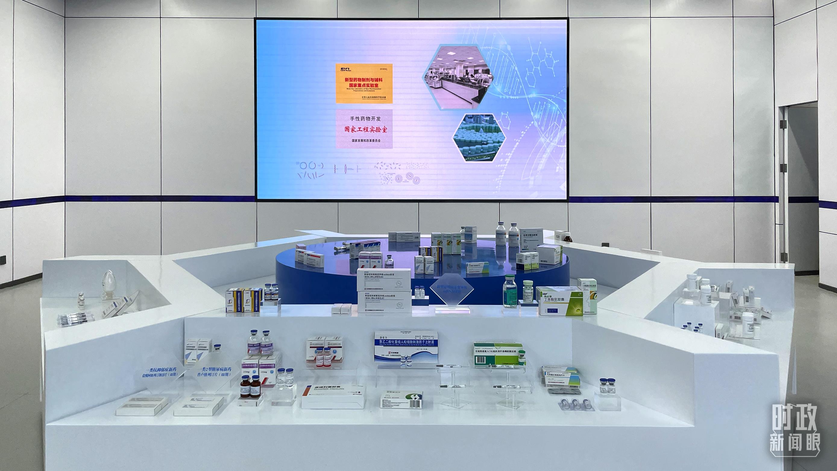 △石家莊國際生物醫(yī)藥園規(guī)劃展館內(nèi)展示企業(yè)研發(fā)生產(chǎn)的藥品。(總臺央視記者蔣碩拍攝)