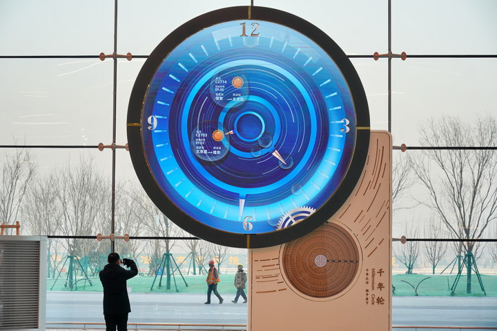 雄安站候車廳,一座“千年輪”吸引著往來旅客的目光。它的起始日期被設(shè)定為2017年4月1日——“雄安”第一次被公眾知曉的日子。“千年輪”的底座上,鐫刻著8個金色大字——“千年之計 始于當下”。齒輪不停地轉(zhuǎn)動,記錄下歷史前進的軌跡。