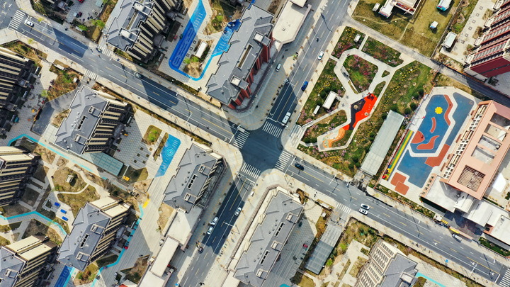 雄安新區(qū)容西片區(qū)內(nèi)的街道和公園(2023年3月31日攝,無人機照片)。新華社記者 牟宇 攝