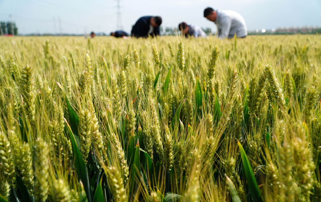 2023年5月24日,在山東省菏澤市巨野縣董官屯鎮(zhèn),高標(biāo)準(zhǔn)農(nóng)田里的小麥長(zhǎng)勢(shì)良好豐收在望。新華社記者徐速繪 攝