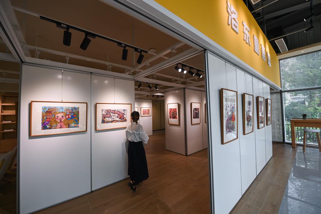 6月15日,游客在嘉興市秀洲區(qū)新塍鎮(zhèn)洛東村參觀洛東童畫館。新華社記者 徐昱 攝