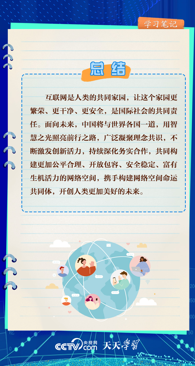 天天學(xué)習(xí)“互聯(lián)網(wǎng)發(fā)展是無國界、無邊界的,利用好、發(fā)展好、治理好互聯(lián)網(wǎng)必須深化網(wǎng)絡(luò)空間國際合作,攜手構(gòu)建網(wǎng)絡(luò)空間命運(yùn)共同體。”面對(duì)日益發(fā)展擴(kuò)大的網(wǎng)絡(luò)空間,習(xí)近平主席倡導(dǎo)構(gòu)建網(wǎng)絡(luò)空間命運(yùn)共同體,為推動(dòng)全球網(wǎng)絡(luò)空間互聯(lián)互通、共享共治注入中國智慧。