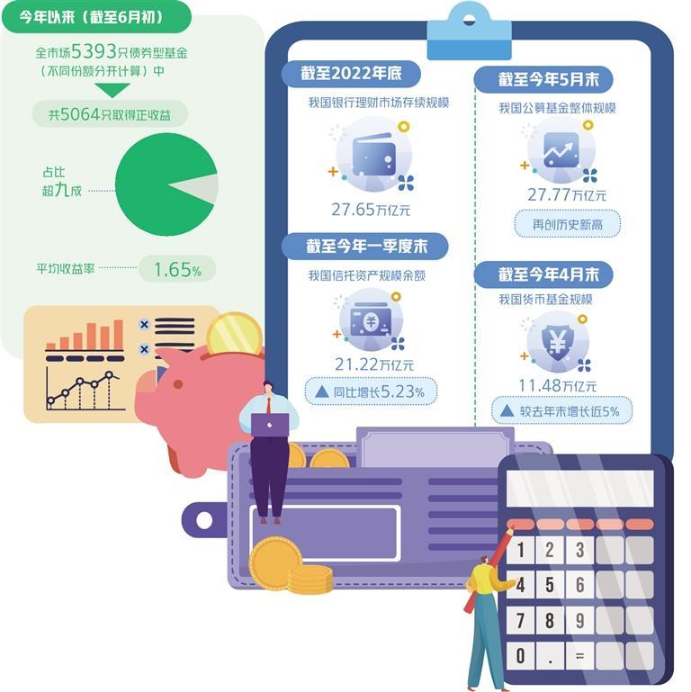 除上述兩類理財產(chǎn)品之外,公募基金也是投資者較為關(guān)注的一類理財產(chǎn)品。中國基金業(yè)協(xié)會公布的數(shù)據(jù)顯示,截至今年5月末,公募基金整體規(guī)模達(dá)27.77萬億元,再創(chuàng)歷史新高。