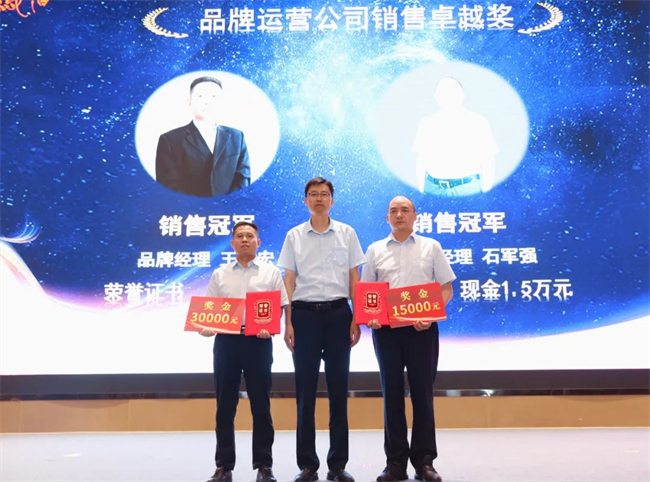 張周虎為品牌運(yùn)營公司銷售卓越獎獲得者頒發(fā)榮譽(yù)證書與獎金