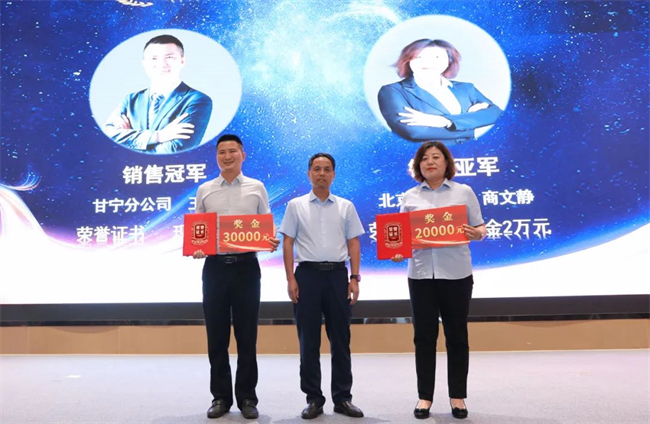 郭拴新為銷售卓越獎獲得者頒發(fā)榮譽(yù)證書與獎金