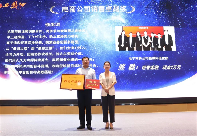 西鳳股份公司財務(wù)管理部部長陳宏利為業(yè)務(wù)經(jīng)理銷售卓越獎獲得者頒發(fā)榮譽(yù)證書與獎金