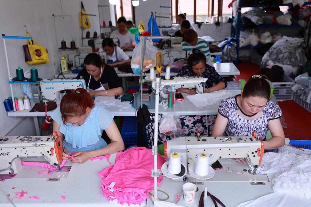 2023年7月18日,貴州最大易地搬遷安置點畢節(jié)市七星關區(qū)柏楊林街道,搬遷居民在就業(yè)幫扶車間工作。新華社記者劉續(xù) 攝