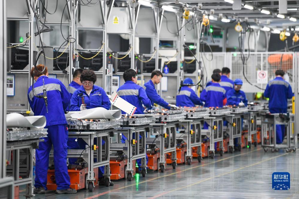 在特斯拉上海超級工廠,工人在車間內(nèi)忙碌(2月27日攝)。新華社記者 周蕊 攝