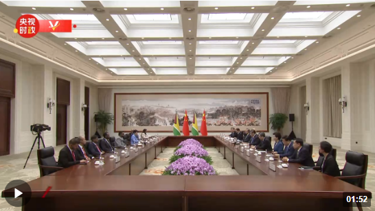 在會(huì)見圭亞那總統(tǒng)阿里時(shí),習(xí)主席說(shuō),中圭兩國(guó)要推動(dòng)構(gòu)建更加緊密的中圭命運(yùn)共同體。