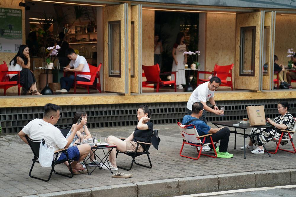 7月26日,年輕人在一棟由停車樓頂層改造而來的飲品店內(nèi)消費休閑。新華社記者 邵瑞 攝