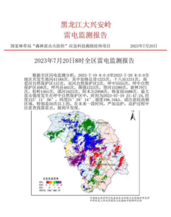 入夏以后,大興安嶺林區(qū)持續(xù)干旱少雨,日平均氣溫突破20℃,部分地區(qū)出現(xiàn)35℃以上高溫;大部地區(qū)降水偏少,加之強(qiáng)對流天氣高發(fā),雷電活動頻繁,2023年7月6日0時至8月6日22時,黑龍江大興安嶺發(fā)生地閃122845次,內(nèi)蒙古大興安嶺發(fā)生地閃91585次;2022年同期,黑龍江大興安嶺發(fā)生地閃95845次,內(nèi)蒙古大興安嶺發(fā)生地閃85124次。2023年雷電明顯偏多,特別是北部高緯度林區(qū),高山植被偃松林含水率低、含油率高,發(fā)生雷擊后極易燃燒。