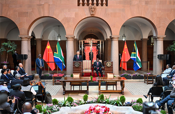 我們都高度重視民心相通,主張雙方要做相知相親的友好伙伴。我們要在合作中堅(jiān)持以人民為中心,讓合作成果更多惠及兩國(guó)人民。中方支持南非政府加強(qiáng)職業(yè)教育、促進(jìn)青年就業(yè)的努力。雙方同意加強(qiáng)教育、科技、文化、旅游等領(lǐng)域交流合作。