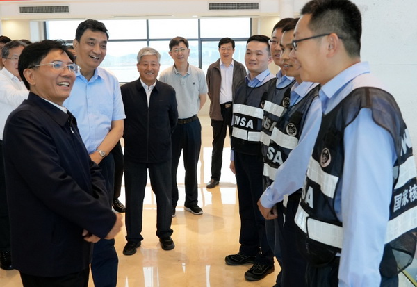隨后,孫金龍深入到核電機(jī)組項(xiàng)目一線調(diào)研,實(shí)地查看3、4號(hào)機(jī)組工程指揮中心和施工現(xiàn)場(chǎng),了解核電項(xiàng)目智慧工地集成平臺(tái)運(yùn)行情況,到2號(hào)機(jī)組主控室,仔細(xì)詢問指揮系統(tǒng)監(jiān)測(cè)報(bào)警處置情況,詳細(xì)了解機(jī)組安全運(yùn)行和監(jiān)管情況。他強(qiáng)調(diào),核安全是核電的生命線,是國(guó)家安全的重要組成部分。要深入貫徹總體國(guó)家安全觀和理性、協(xié)調(diào)、并進(jìn)的核安全觀,更好統(tǒng)籌發(fā)展和安全,始終堅(jiān)持安全第一、質(zhì)量第一的原則,嚴(yán)格核與輻射安全監(jiān)管,促進(jìn)核事業(yè)安全有序發(fā)展。要培育和樹牢核安全文化理念,進(jìn)一步強(qiáng)化底線思維和問題導(dǎo)向,嚴(yán)格落實(shí)核安全責(zé)任,加強(qiáng)安全數(shù)據(jù)分析和經(jīng)驗(yàn)反饋,切實(shí)做好安全防范和預(yù)警處置,全面提高核安全監(jiān)管能力和水平,確保核與輻射絕對(duì)安全。孫金龍還看望慰問了生態(tài)環(huán)境部華東核與輻射安全監(jiān)督站駐廠監(jiān)督員,與大家親切交談,勉勵(lì)大家不斷提高政治站位,時(shí)刻繃緊安全這根弦,發(fā)揚(yáng)“嚴(yán)、慎、細(xì)、實(shí)”的優(yōu)良作風(fēng),不斷提升工作本領(lǐng),認(rèn)真履行好核安全監(jiān)管職責(zé)。