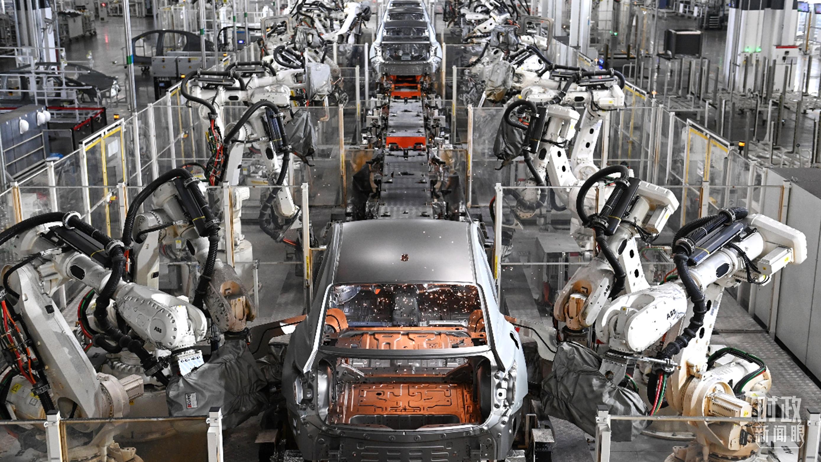 △中國一汽紅旗制造中心,全自動(dòng)機(jī)械手臂正在進(jìn)行車體焊裝。(圖/視覺中國)