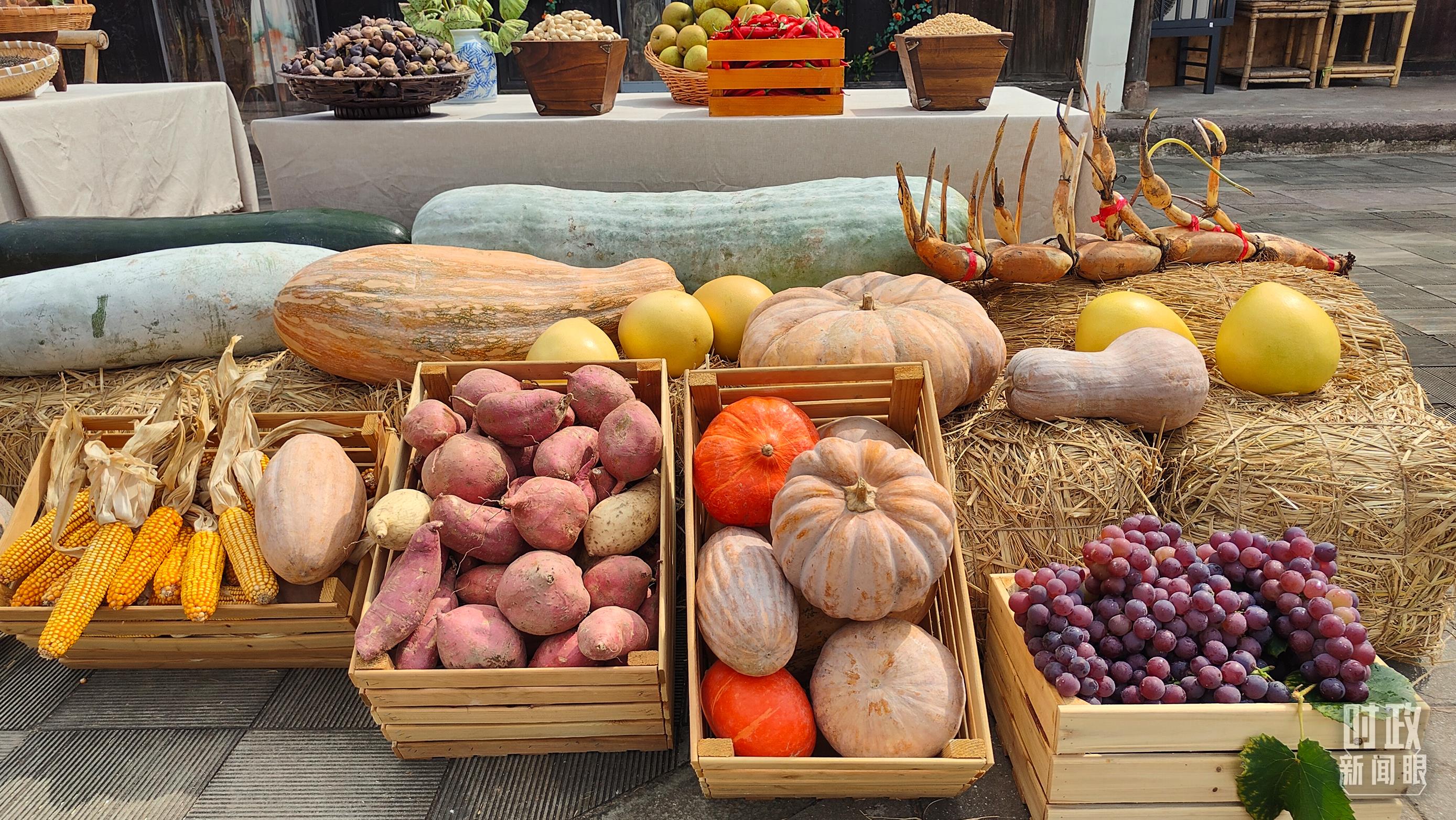 △村廣場“共富市集”,擺放著種類豐富的特色農產品。(總臺央視記者楊立峰拍攝)