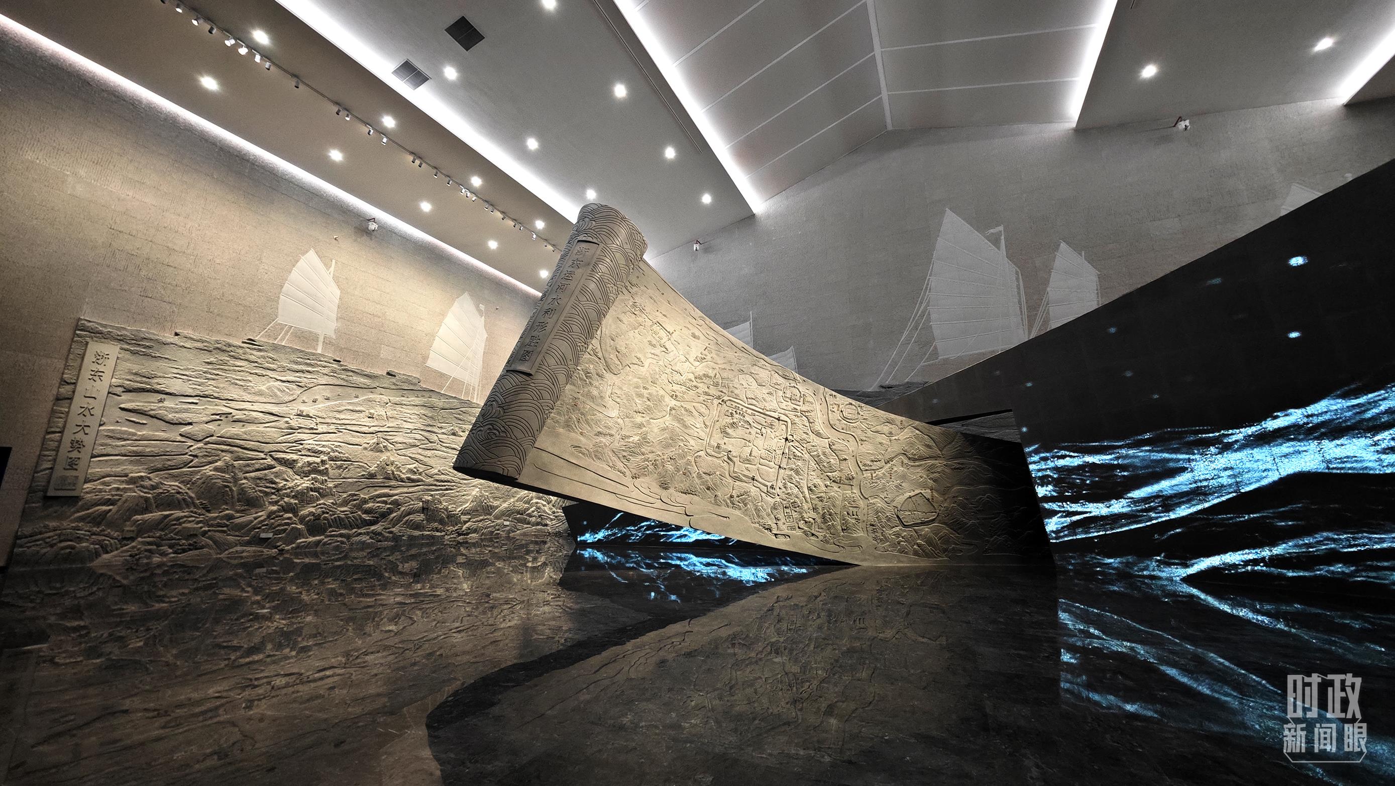 △博物館內的《浙東運河水利形勝圖》《浙東山水大勢圖》浮雕。(總臺央視記者彭漢明拍攝)