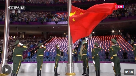 第19屆亞洲運(yùn)動(dòng)會(huì)開(kāi)幕式9月23日晚在浙江省杭州市舉行。國(guó)家主席習(xí)近平出席開(kāi)幕式。現(xiàn)場(chǎng)升國(guó)旗,奏唱國(guó)歌!