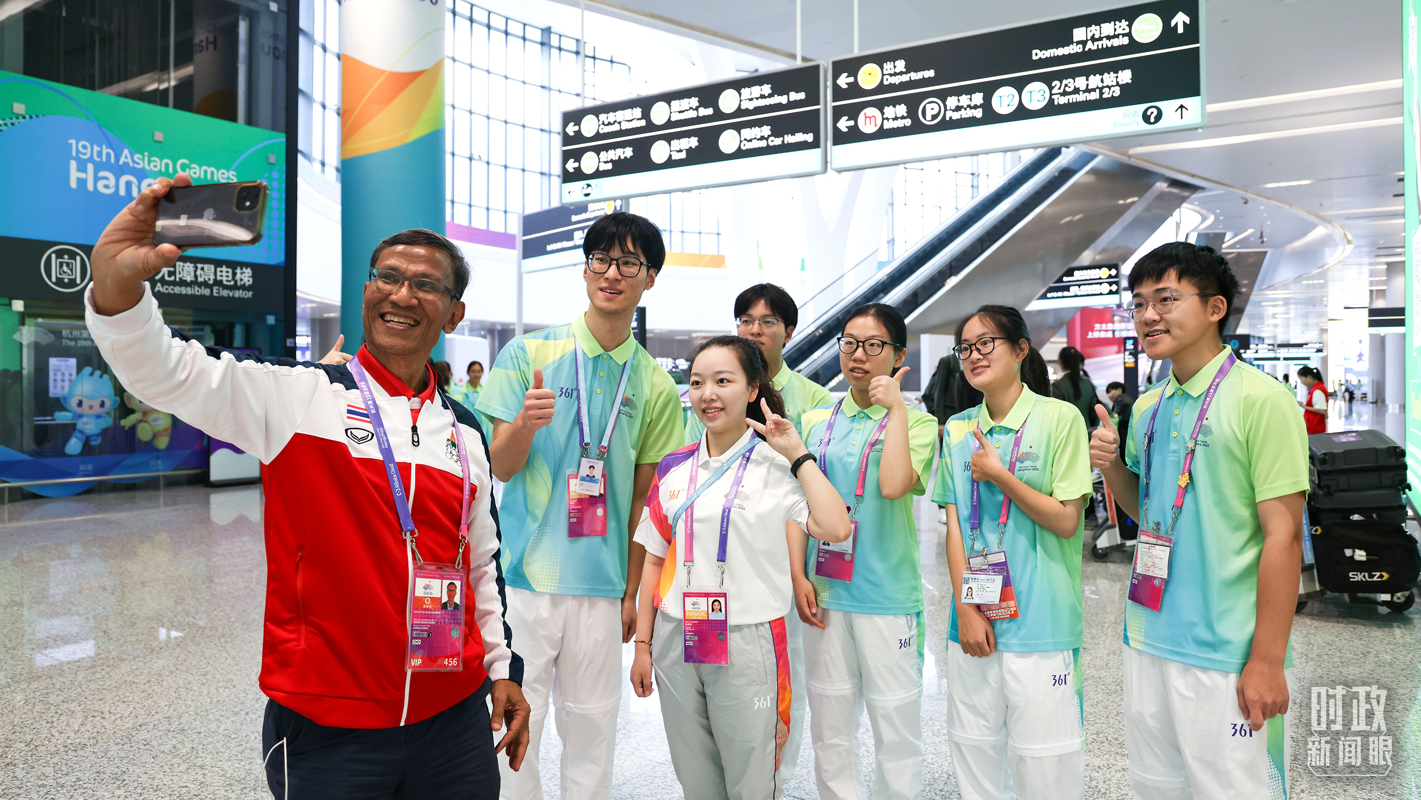 △亞運(yùn)村為各代表團(tuán)舉行歡迎儀式,隊(duì)員們紛紛與吉祥物"蓮蓮"、"琮琮"、"宸宸"合影。(總臺(tái)央視記者陳偉奎拍攝)