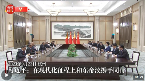 當(dāng)天,從上午到晚上,習(xí)近平主席在杭州會見多位亞洲國家領(lǐng)導(dǎo)人,為國際貴賓舉行歡迎宴會,并同他們共同出席杭州亞運(yùn)會開幕式。從習(xí)主席在會見和致辭時(shí)的重要講話,到別具特色的歡迎宴會、精彩紛呈的開幕式,都傳遞了豐富的信息?!稌r(shí)政新聞眼》為你解讀。