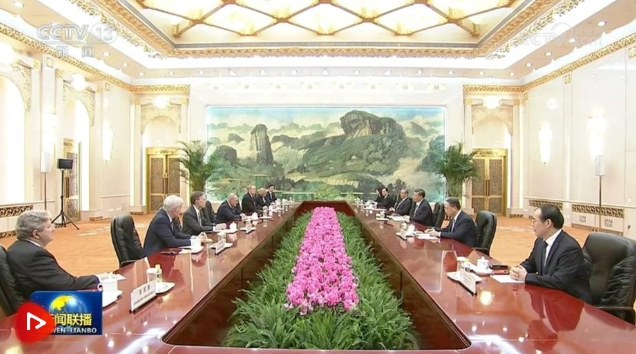 10月9日下午,國家主席習(xí)近平在人民大會堂會見美國國會參議院多數(shù)黨領(lǐng)袖舒默率領(lǐng)的美國國會參議院兩黨代表團(tuán)。