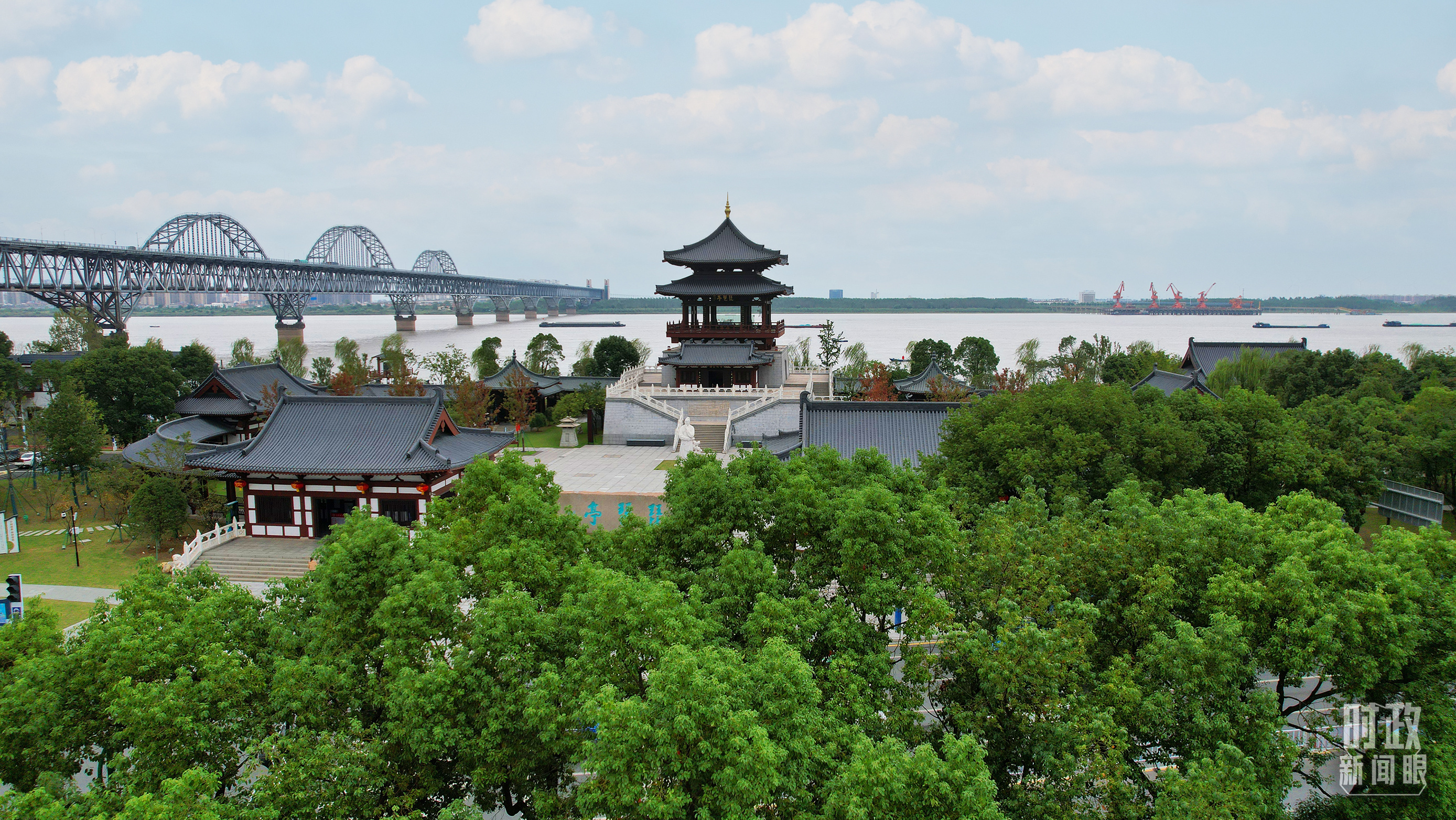 △俯瞰長(zhǎng)江國(guó)家文化公園九江城區(qū)段。(總臺(tái)記者李海峰拍攝)