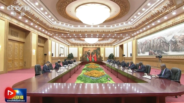 10月18日晚,國家主席習近平在人民大會堂會見來華出席第三屆“一帶一路”國際合作高峰論壇的肯尼亞總統(tǒng)魯托。