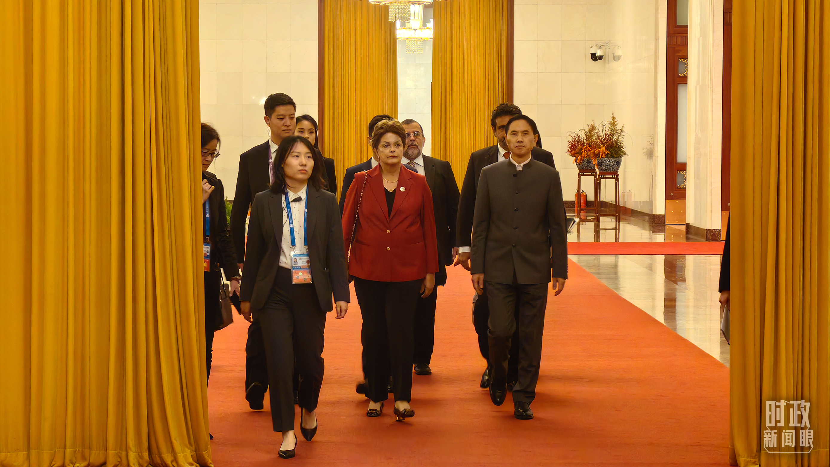 △人民大會(huì)堂,蒙古國(guó)總統(tǒng)呼日勒蘇赫走向會(huì)見廳。(總臺(tái)國(guó)廣記者李晉拍攝)