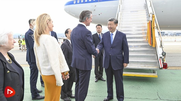 習(xí)近平乘坐專機(jī)抵達(dá)舊金山國(guó)際機(jī)場(chǎng)時(shí),受到美國(guó)加利福尼亞州州長(zhǎng)紐森、財(cái)政部長(zhǎng)耶倫等美方代表熱情迎接。