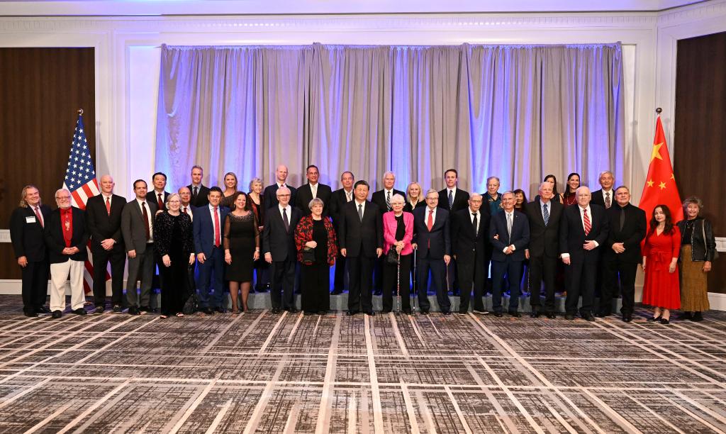 當(dāng)?shù)貢r間11月15日晚,國家主席習(xí)近平在美國舊金山出席美國友好團體聯(lián)合舉行的歡迎宴會。這是宴會開始前,習(xí)近平會見飛虎隊和史迪威將軍后人、鼓嶺、艾奧瓦州、華盛頓州等方面友好人士代表,同他們親切交談并合影留念。