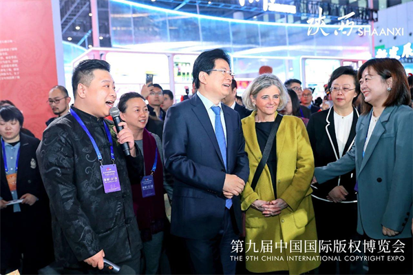 11月23日上午,中宣部副部長(zhǎng)張建春、世界知識(shí)產(chǎn)權(quán)組織副總干事希爾維·福爾班等一行來(lái)到陜西館,聽取了陜西館的情況介紹并予以高度評(píng)價(jià)。
