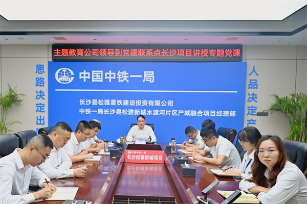 近日,中鐵一局一公司副總經(jīng)理裴賀元到長(zhǎng)沙縣產(chǎn)城融合項(xiàng)目部調(diào)研,并為全體黨員干部講授主題教育專(zhuān)題黨課。