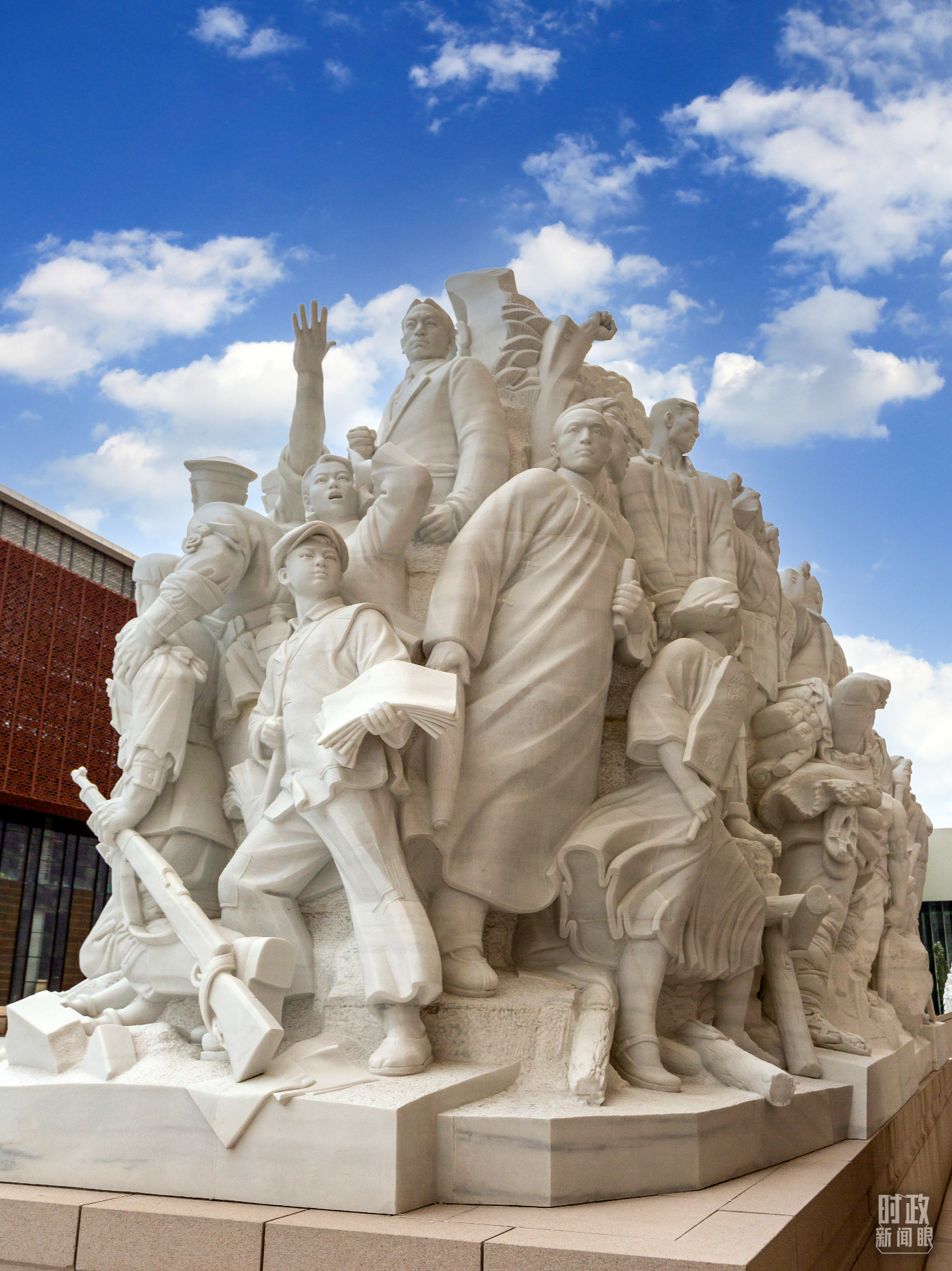 中國共產(chǎn)黨歷史展覽館前的主題雕塑《信仰》。(圖/視覺中國)