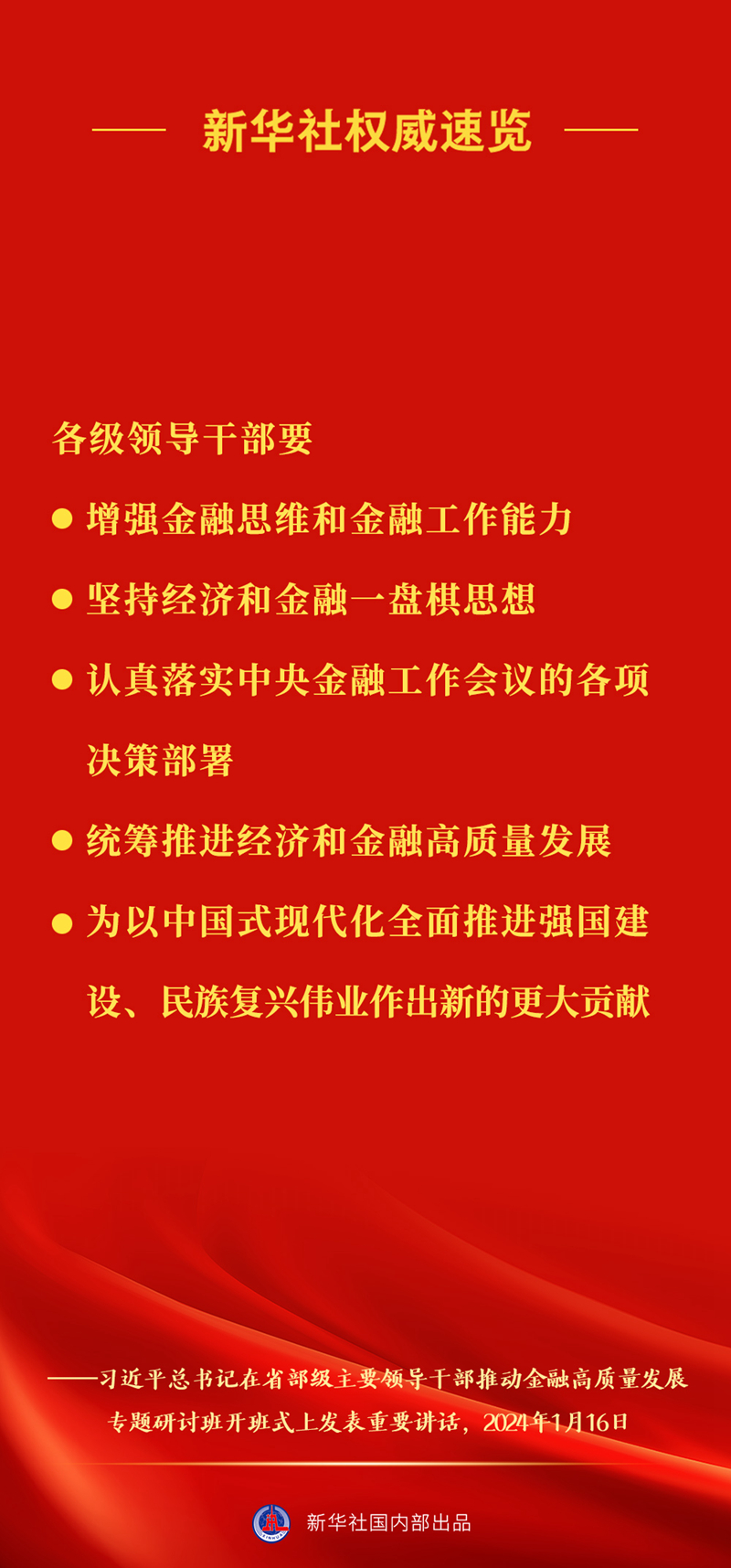 新華社權(quán)威速覽 | 習近平總書記在推動金融高質(zhì)量發(fā)展專題研討班上重要講話要點