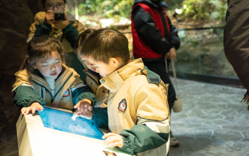 “媽媽,你看這棵樹上面也掛了牌子。”一大早,開化縣實驗幼兒園的小朋友們來到古田山探索自然的秘密。小朋友與家長沿路而上,檵木、浙江大青、赤楊葉等植物被一一記錄在研學(xué)手冊上,有的小朋友還手持放大鏡觀察植物的脈絡(luò)紋理,將自己喜歡的樹葉記錄下來,剪出形狀。“今天很開心,我看到了喜歡的楊梅樹,還撿到了鵝卵石。”一個小朋友興奮地歡呼到。結(jié)束室外活動,孩子們與家長來到了錢江源國家公園科普館,近距離觀察野生動植物標本,學(xué)習(xí)錢江源國家公園動植物相關(guān)知識。